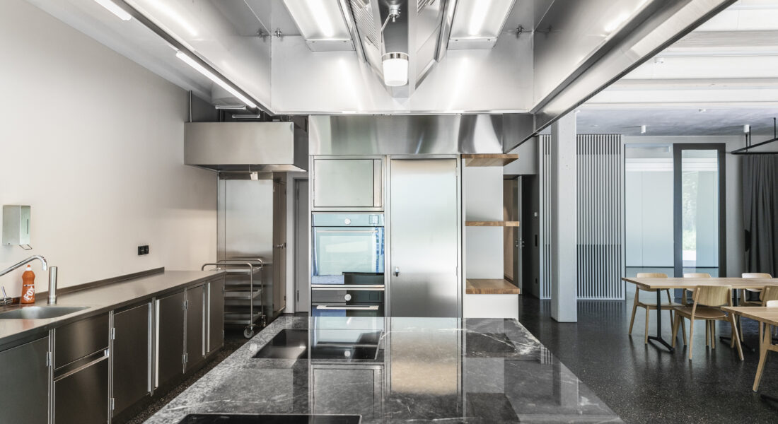 - Eventküche mit Kochfeldern, Backofen, grossem Kühlschrank, Spühlmaschine, etc.